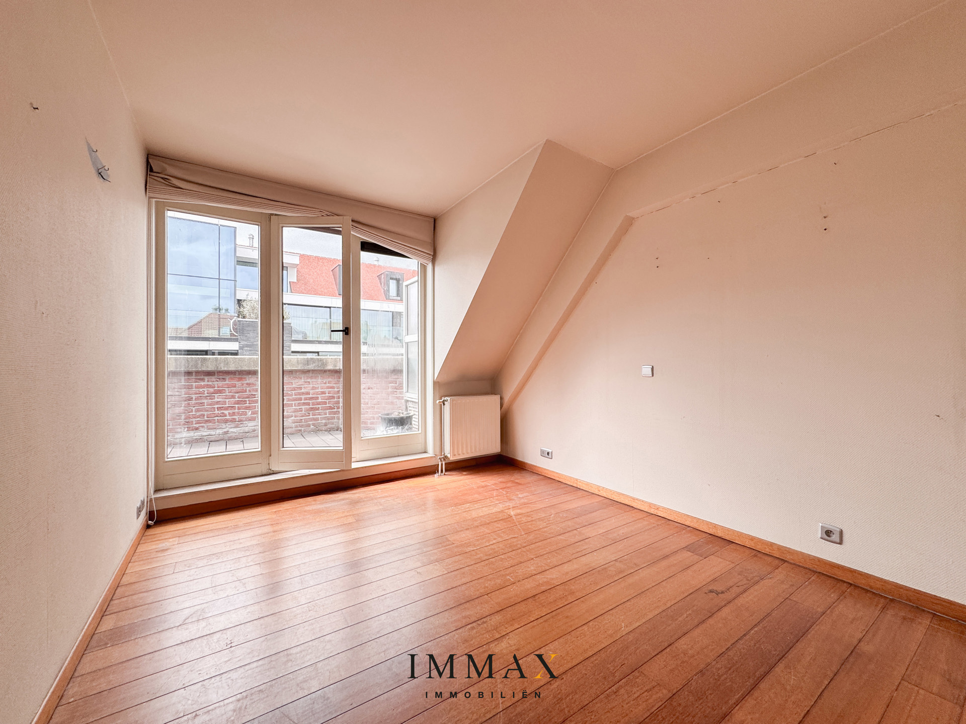 KIKR realiseert een nieuw vastgoedproject in het centrum van Knokke, op de hoek van de Bayauxlaan en Leopoldlaan, vlak bij de Lippenslaan. Dit ruime duplex-hoekappartement op de bovenste verdieping wordt volledig gerenoveerd tot een stijlvolle, eigentijdse woonst of luxueus tweede verblijf. Met 2 slaapkamers, 2 badkamers, een bewoonbare oppervlakte van ca. 110 m² en een doorlopend west- en zuidgericht terras van ca. 22 m² met zijdelings zeezicht, combineert dit project licht, ruimte en topligging. Een doordachte renovatie met hoogwaardige materialen moet dit appartement laten uitgroeien tot een duurzame investering in één van de meest gegeerde buurten van Knokke.